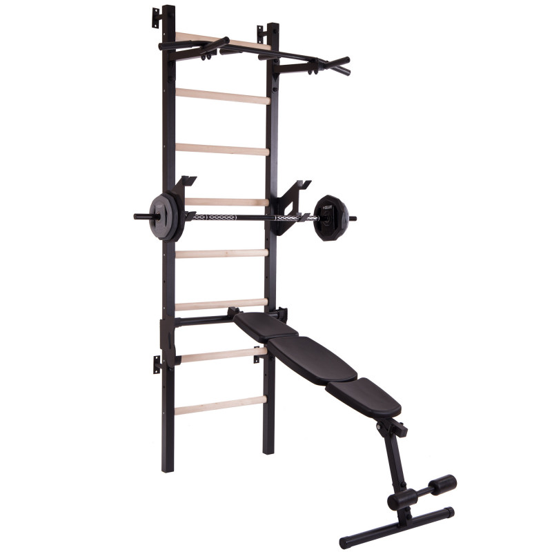 Шведская стенка с подставкой под штангу, турником и скамьей для пресса Master Wood PRO SP-Planeta L-2405 (металл, дерево, PU, 2,4х0,7 м)