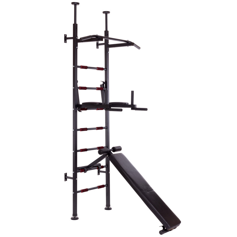 Комплектация: Скамья для пресса, Собранный турник, Брусья с местом для штанги