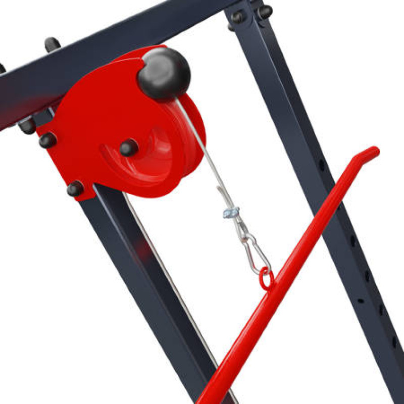 Щоб підвищити якість і ефективність вашого тренування обладнання для силових тренувань, вам потрібен надійний, міцний і універсальний пристрій. Ми оснастили нашу клітку двома шківами, завдяки яким ви можете виконувати багато різних вправ, включаючи біцепс, трицепс і плечі. Додатковою перевагою тренажерної клітки є штанга для підтягувань, вбудована в раму обладнання. Його відстань становить цілих 110 см! Підйом ідеально підходить для вправ на підтяжку м'язів після жиму штанги.