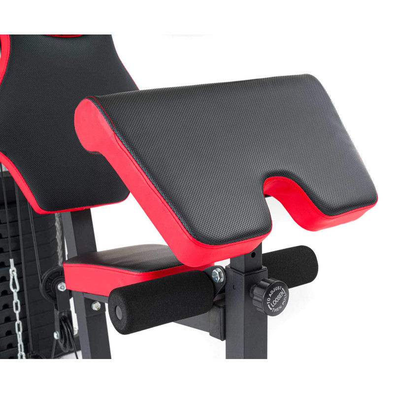 Силовая станция HS-1044K - оборудование, которое позволяет выполнять разнообразные упражнения на разные группы мышц. Поочередно используя две тяги (верхнюю и нижнюю), парту Скотта, бабочку, вы проработаете практически все тело: бицепсы (парта Скотта), трицепсы, плечи, грудные мышцы (бабочка), пресс (подъем ног), спину, заднюю часть ног. Вы сможете выполнять упражнения разной интенсивности: от легких разминок до оздоровительных и силовых.