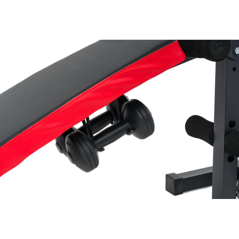 - наклонная скамья с двумя гантелями весом 1,5кг, складная, регулируемая по высоте