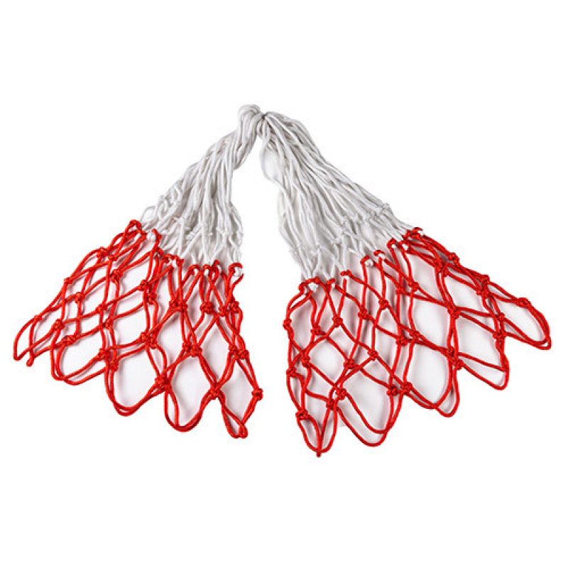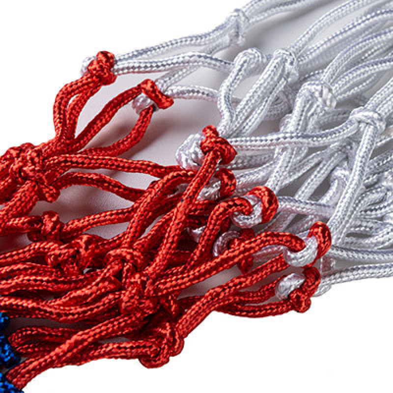 Сетка баскетбольная имеет классическую бело-сине-красную расцветку и отлично впишется в любой спортивный зал.