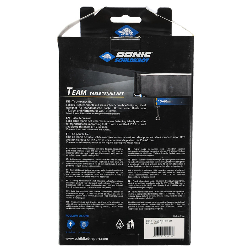 Сетка Donic Team с креплением для настольного тенниса. Подходит для игры на открытом воздухе и в помещении.