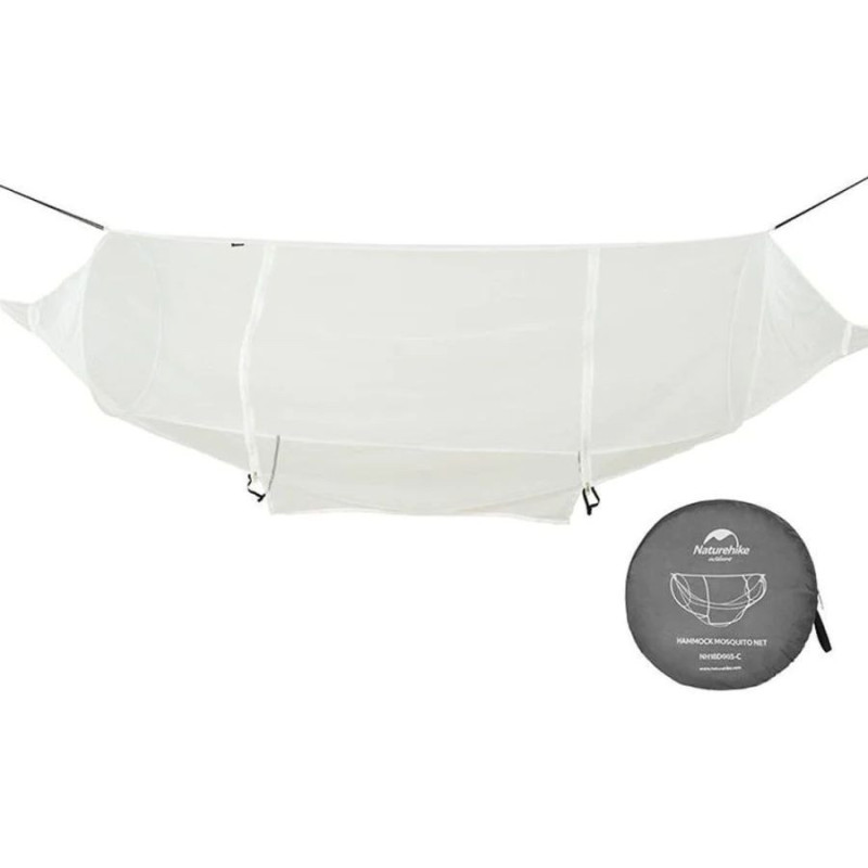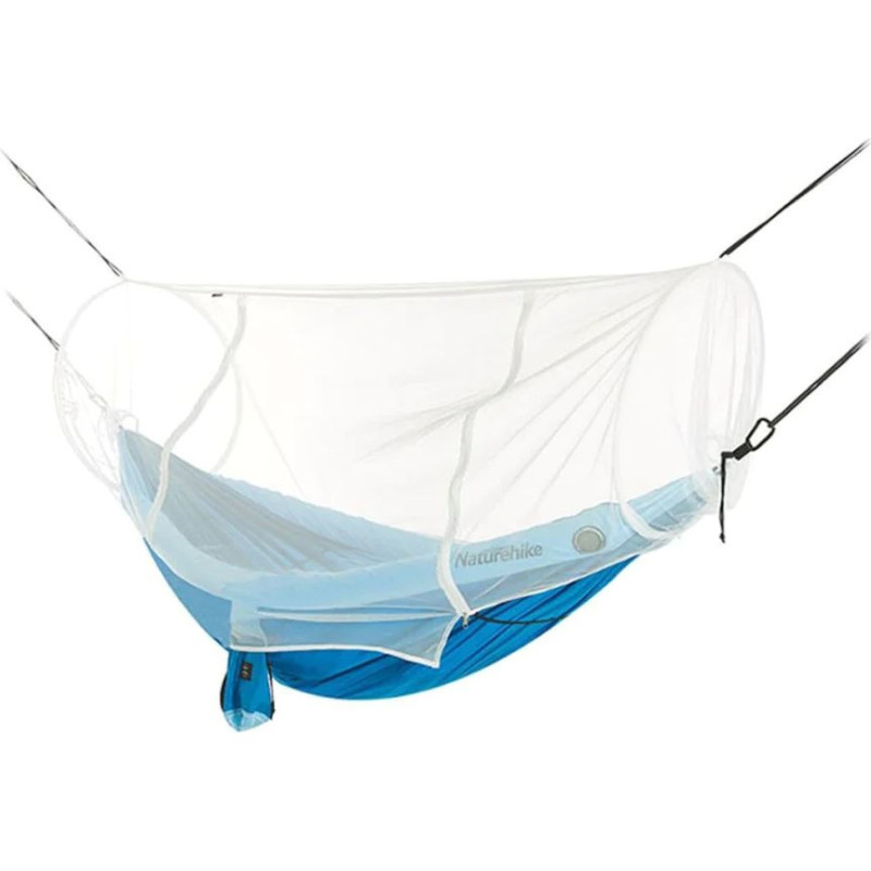 Щоб відпочинок був комфортним, а сон — максимально міцним, туристичний гамак рекомендується використовувати разом із москітною сіткою NH18D003-C від Naturehike. Цей аксесуар виготовлений із надлегкого та дихаючого синтетичного матеріалу, що захищає відпочиваючого від надокучливих комах.