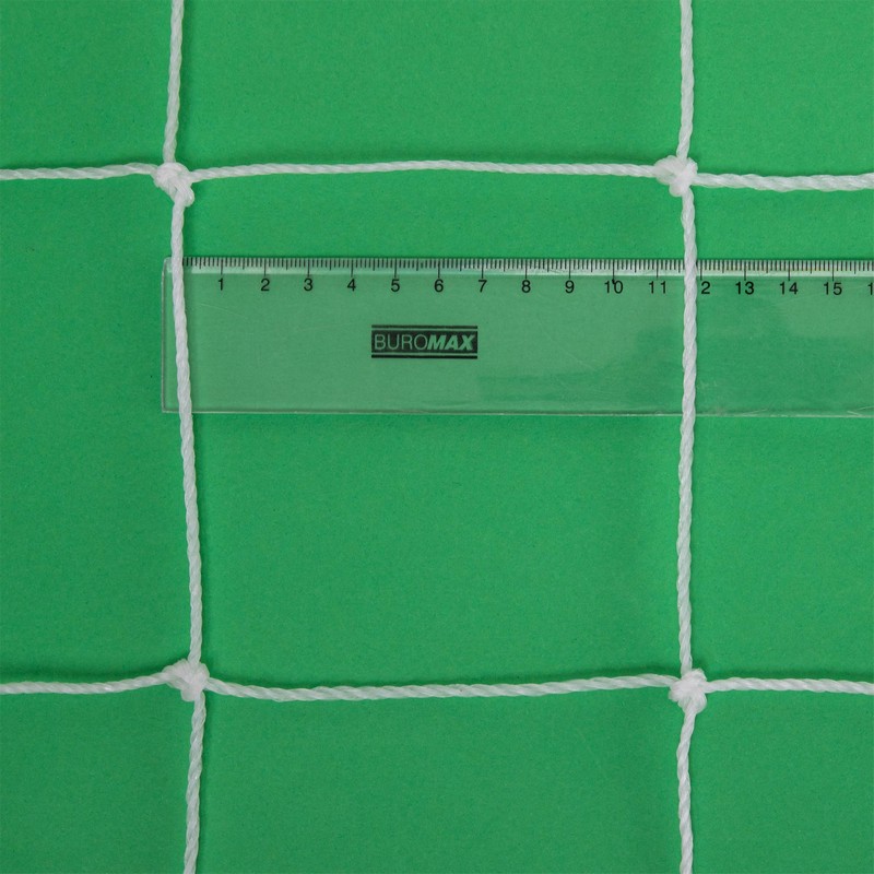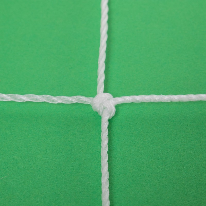 Толщина нити — 3 мм. Такая толщина обеспечивает уверенное сопротивление нагрузкам и делает сетку визуально выразительной. Это не просто декоративный элемент — нити эффективно останавливают мяч даже на высоких скоростях, предотвращая вылет за пределы ворот и обеспечивая безопасность игроков.