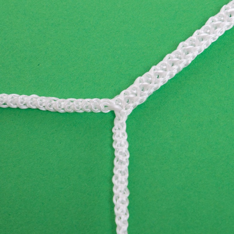 Сетка изготовлена безузловым методом. Полиэстеровый шнур не повреждает поверхность мяча при контакте с сеткой. Сторона ячейки шестиугольной формы имеет длину 12 см.
