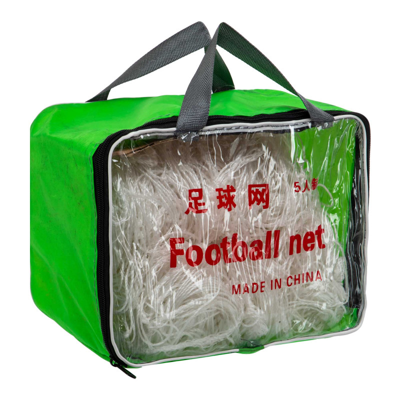 Сетка на ворота футбольная тренировочная выполнена из полиэстеровой нити в стандартном размере с ячейками 14х14 см. Благодаря использованию легкого синтетического материала, изделие обладает небольшим весом и компактными размерами в сложенном виде. При этом нить достаточно крепкая, чтобы выдерживать мощные удары мячом. Плетение выполнено безузловым методом, благодаря чему повышается срок службы футбольного мяча. Плоское полотно сетки не повреждает покрышку. Сетка устойчива к влиянию внешних факторов, не впитывает влагу и хорошо переносит перепады температуры. Для фиксации на воротах шнуры привязываются к перекладинам. Хранить сетку можно в фирменном чехле с молнией и удобными ручками ,в комплекте два изделия.