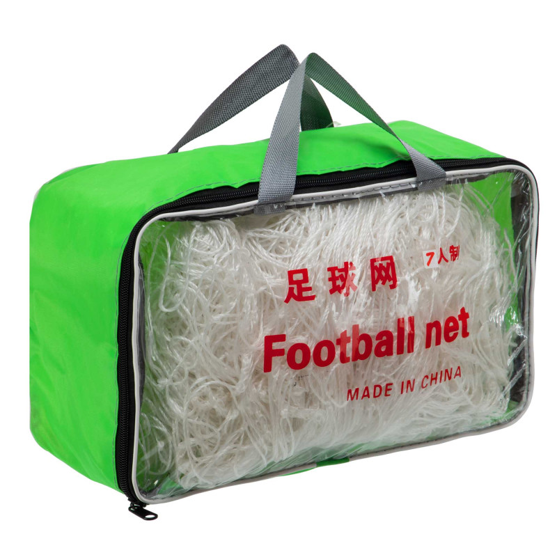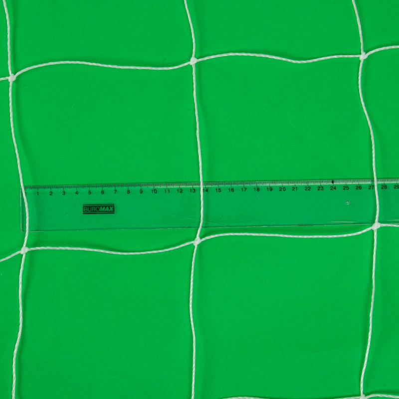 Сетка на ворота футбольная тренировочная выполнена из полиэстеровой нити в стандартном размере с ячейками 14х14 см. Благодаря использованию легкого синтетического материала, изделие обладает небольшим весом и компактными размерами в сложенном виде. При этом нить достаточно крепкая, чтобы выдерживать мощные удары мячом. Плетение выполнено безузловым методом, благодаря чему повышается срок службы футбольного мяча. Плоское полотно сетки не повреждает покрышку. Сетка устойчива к влиянию внешних факторов, не впитывает влагу и хорошо переносит перепады температуры. Для фиксации на воротах шнуры привязываются к перекладинам. Хранить сетку можно в фирменном чехле с молнией и удобными ручками ,в комплекте два изделия.