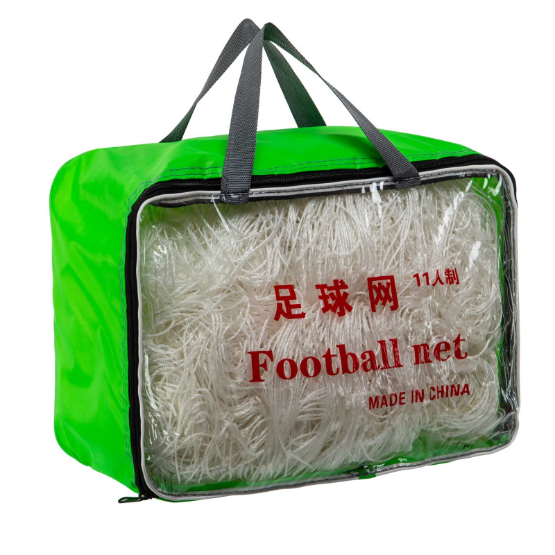 Сетка имеет квадратные ячейки с размером 14x14 см, которые позволяют эффективно задерживать мяч, предотвращая его вылет за пределы ворот и снижая нагрузку на сетку при сильных ударах.