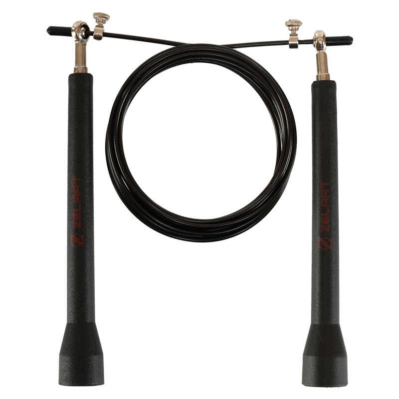 Скакалка скоростная Кроссфит с шарнирным подшипником и стальным тросом Zelart FI-4862 (l-3м, d-2,5мм, черный)