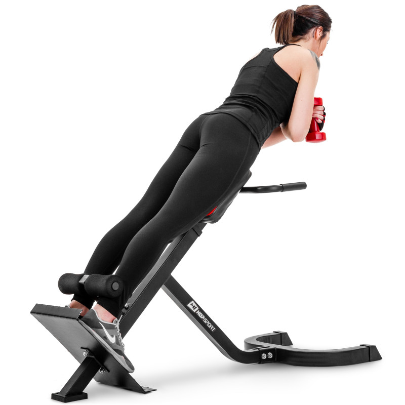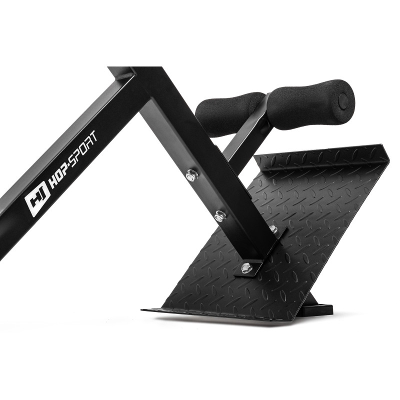 Скамья HS-1018 от Hop-Sport используется для эффективной тренировки пресса, спины, ног и ягодиц. Скамья отличается стабильной конструкцией, высококачественными материалами, используемыми при производстве, и высокой точностью изготовления. Благодаря этой скамье вы можете тренироваться не выходя из дома так же эффективно, как профессиональном спортзале. Лавка HS-1018 - это так называемый римская скамья. Ее важнейшие элементы - фиксатор для ног, опора для бедер и дополнительные подножки. Скамья наклонена к земле под углом 45 градусов. Широкая нижняя опора скамейки гарантирует безопасность во время тренировки.