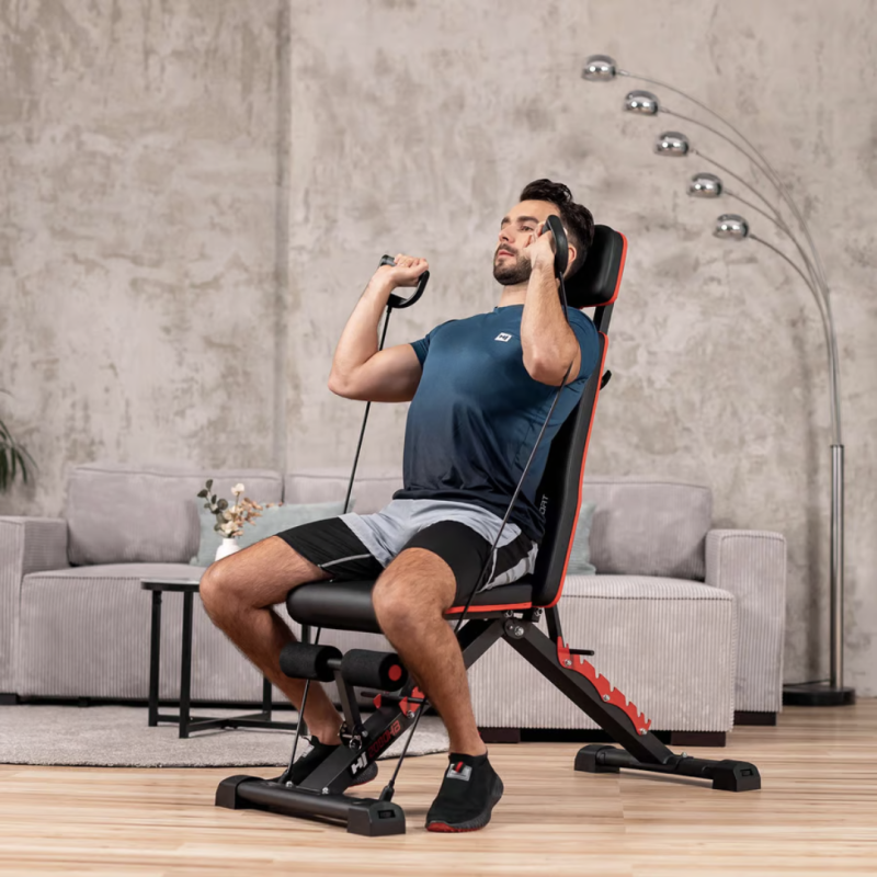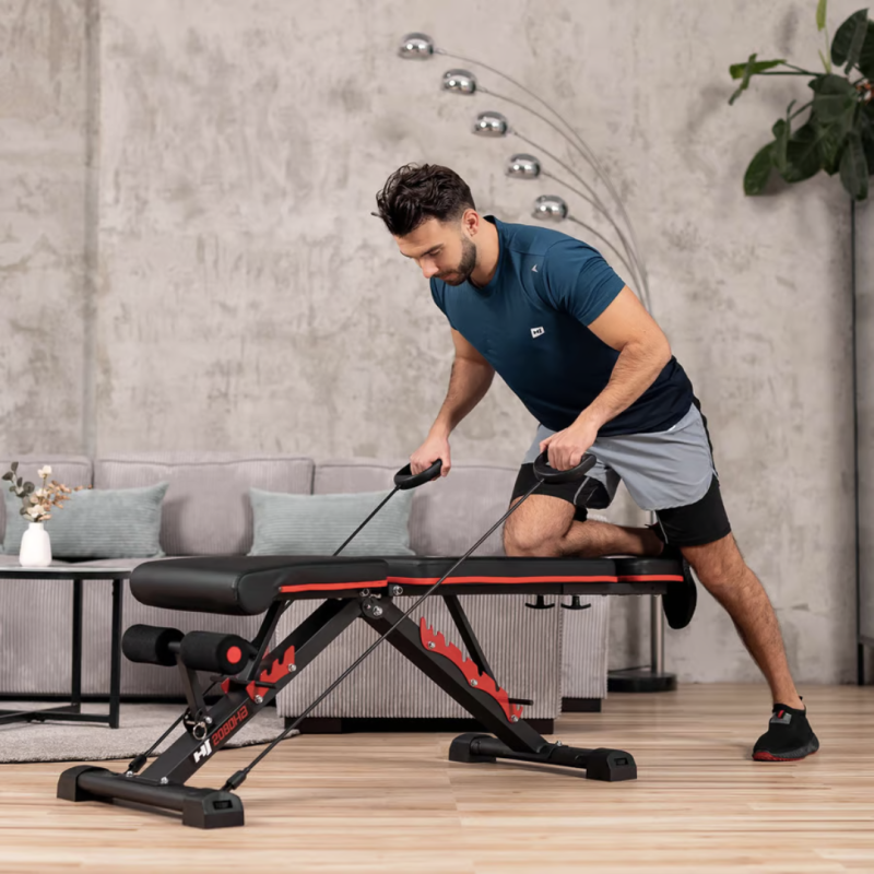 Намереваетесь обустроить спортивный мини зал дома, но не знаете, с чего именно начать? Вам это по силам с новинкой от бренда Hop-Sport. Сложная тренировочная лава HS-2080HB это оборудование, которое поможет вам извлечь максимальную пользу от силовых тренировок со штангой и гантелями. Скамья изготовлена на основе толстых стальных профилей с максимальной нагрузкой до 250кг, обеспечивая стабильность и безопасность во время домашних тренировок. Регулировка отдельных частей скамьи, таких как спинка, сиденье и подголовник, поможет вам подстроить тренажер не только под ваш рост, но и под тип упражнений, которые вы выполняете. После окончания тренировки вы можете удобно сложить скамью в компактный размер и хранить ее в удобном для Вас месте