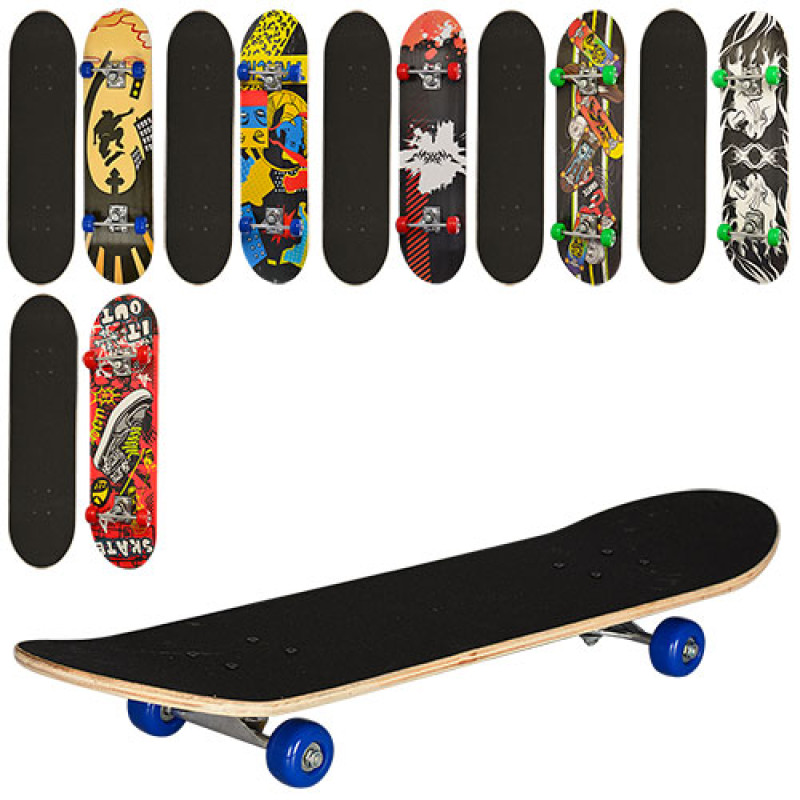 Детский скейт Profi MS 0322: Детский скейт - прекрасное приобретение для ребенка. Конструкция скейтборда легкая и маневренная. Усиленная алюминиевая подвеска крепится к платформе металлическими креплениями. Колеса из ПУ, цветные прозрачные. Дека скейтборда выполнена из натуральной древесины: 7 слоев. Лицевая сторона скейта покрыта крупной наждачкой, что обеспечивает хорошее сцепление с подошвой и не позволит ноге соскользнуть. На лицевой стороне наждачка и рисунок-наклейка на днище скейта. Комплектация: доска и колёса - в разобранном виде. Рекомендованный вес до 50 кг. Размер доски - 79,5*19,5 см. Подшипники - 608Z. Диаметр колес - 5 см. Возраст - от 6 лет.