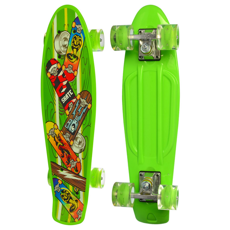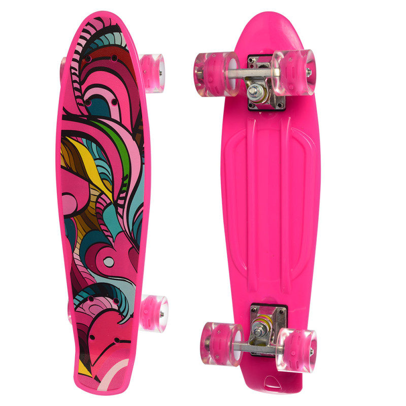 Пенни борд - это альтернативный уменьшенный вариант скейтборда созданный специально для активного отдыха ибыстрого перемещения на небольшие расстояния по городу. Доска с меньшими размерами, и небольшим весом задумана неслучайно, проектировщик преследовал несколько целей основной из которых была доступность товара, чтобы купить пенни борд мог каждый. Он достиг своей цели. Скромные габариты подогрели интерес публики к красивой роликовой доске. Пенни - это универсал, который подходит для всех возрастных категорий. Его обожают дети, подростки, девушки. Большое удовольствие в теплое время года прокатится на яркой, прочной и манёвренной доске.