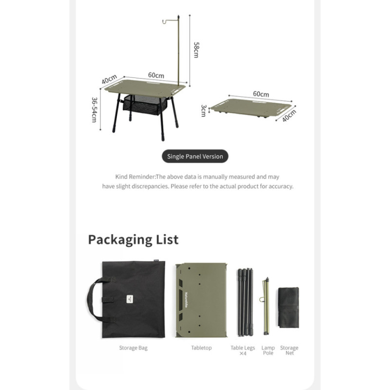 Стіл Naturehike CNK2450JJ025 має складану конструкцію зі стільницею 60 х 40 см. Його можна використовувати для облаштування місця для приготування та приймання їжі на свіжому повітрі або як кавовий столик для організації зони відпочинку.