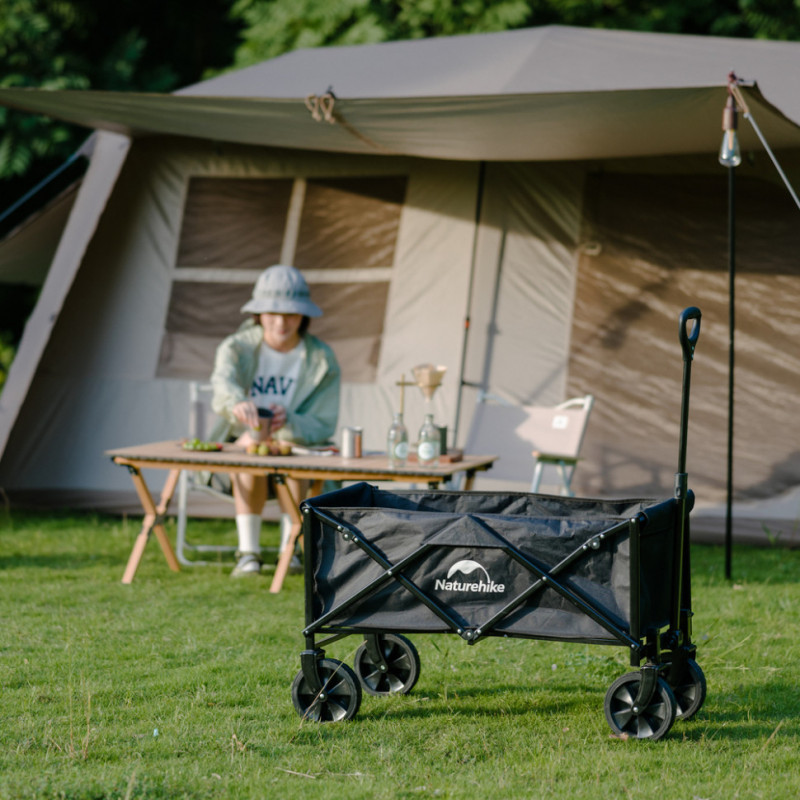 Візок Naturehike CNK2300JU014 позбавляє необхідності носити важкі предмети в руках, пропонуючи зручнішу та функціональнішу альтернативу. Об'єм моделі сягає 100 л, а вантажопідйомність — 100 кг. З її допомогою ви можете без зайвих зусиль перевозити будь-яке спорядження в кемпінгу або на пікніку, а також продукти в супермаркеті.