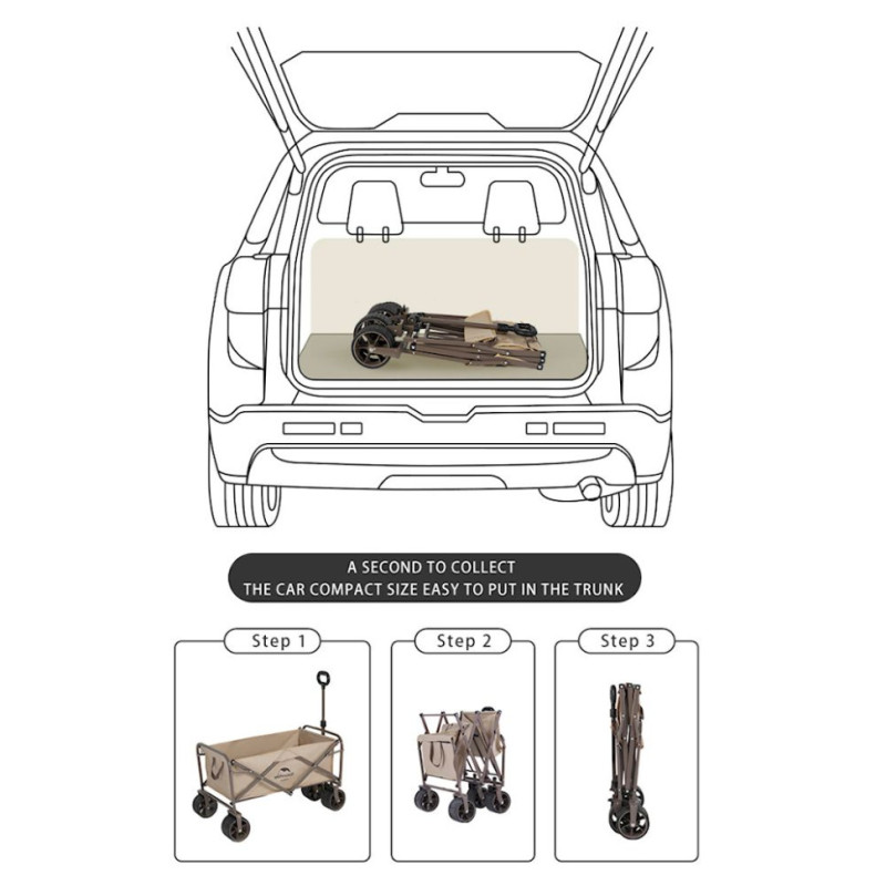 Складаний візочок Naturehike робить транспортування туристичного екіпірування та харчових продуктів легким та комфортним. З його допомогою також можна облаштувати місце для відпочинку, перетворивши модель на невеликий столик за допомогою стільниці (купується окремо).