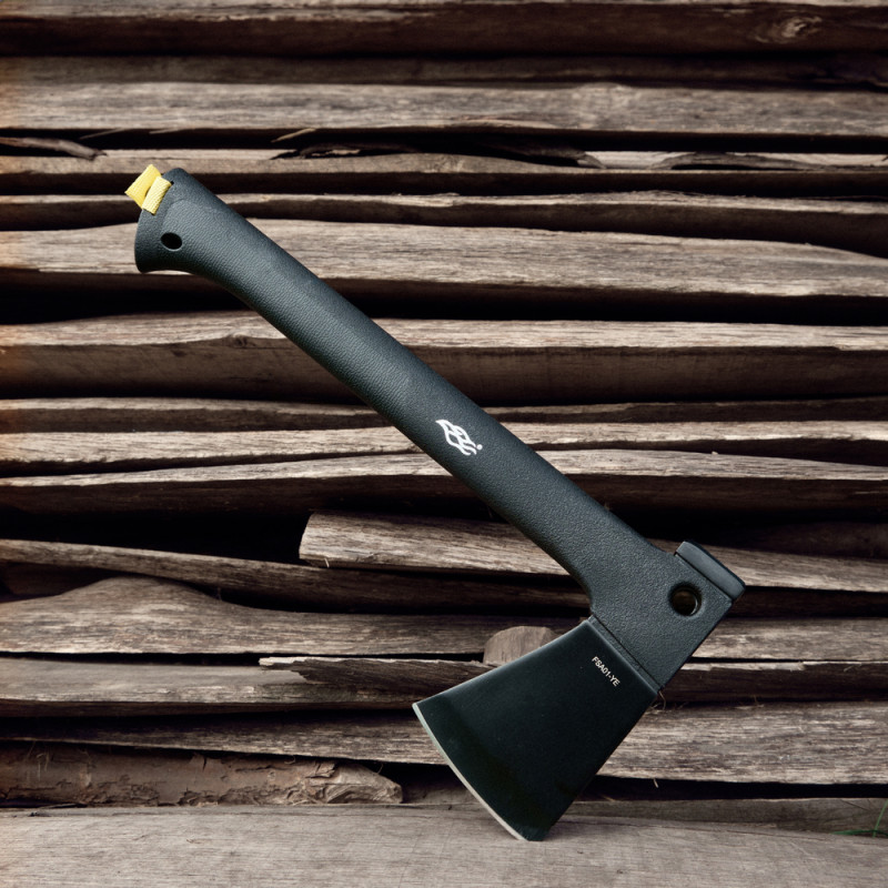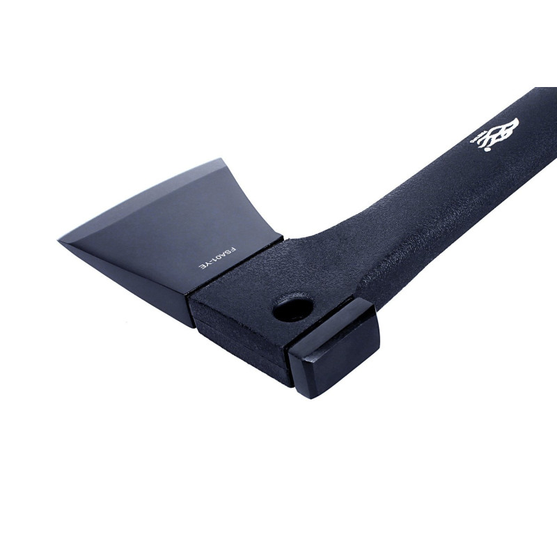Головний інструмент набору — саме сокира. Він найбільший за розмірами — 34,7 см по довжині, з шириною ріжучої кромки 8 див. Для його виготовлення використана сталь 3CR13. А додатковим захистом від корозії стало темне покриття на поверхні металу, який не стирається в процесі експлуатації сокири. Рукоятка цього інструменту зроблена з нейлону, укріпленого за рахунок скловолокна. При тому, що він має високу міцність, ручка залишається дуже легкою. До того ж, вона порожня зсередини, що дозволяє зберігати в сокирі наступний елемент комплекту — ручну пилку.