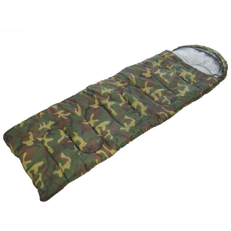 Спальный мешок одеяло с капюшоном SP-Sport SY-4051 (PL, хлопок, 400г на м2, р-р 177+30х75см, t -5 до +15, камуфляж)