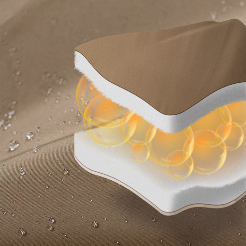 Основний матеріал — поліестер з гладкою поверхнею, яка протистоїть появі зачіпок і не шарудить, коли відпочивальник перевертається з боку на бік. Підкладки з вареної бавовни забезпечують тілу м'якість для повного розслаблення та зберігають природне тепло, захищаючи від холоду та негоди.