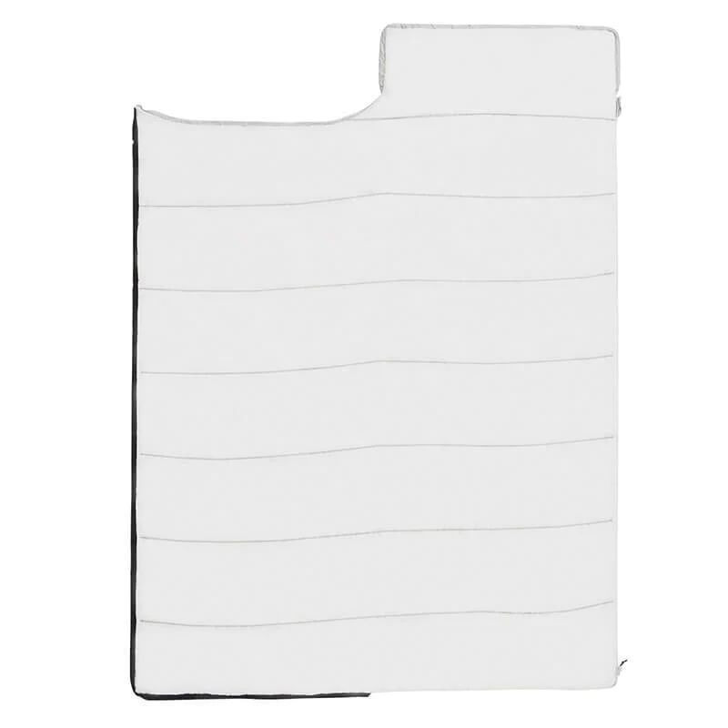 Мішок виготовлений з якісного матеріалу, зовні це поліестер, наповнення всередині — по типу бавовни. Завдяки особливій структурі матеріалу він майже невагомий, дуже легкий і теплий. Матеріал наповнювача багатошаровий, забезпечує циркуляцію повітря, але добре зберігає тепло.