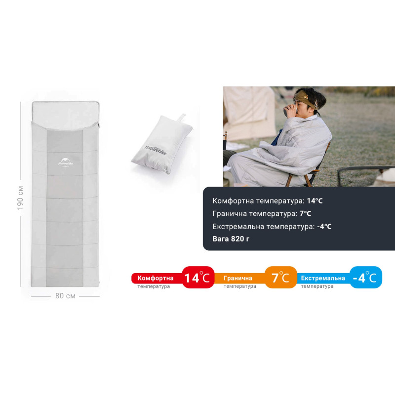 Опис спального мішка з подушкою Naturehike NH22MSD01, сірого