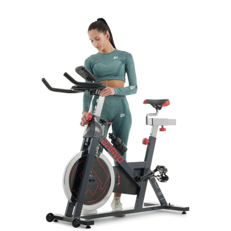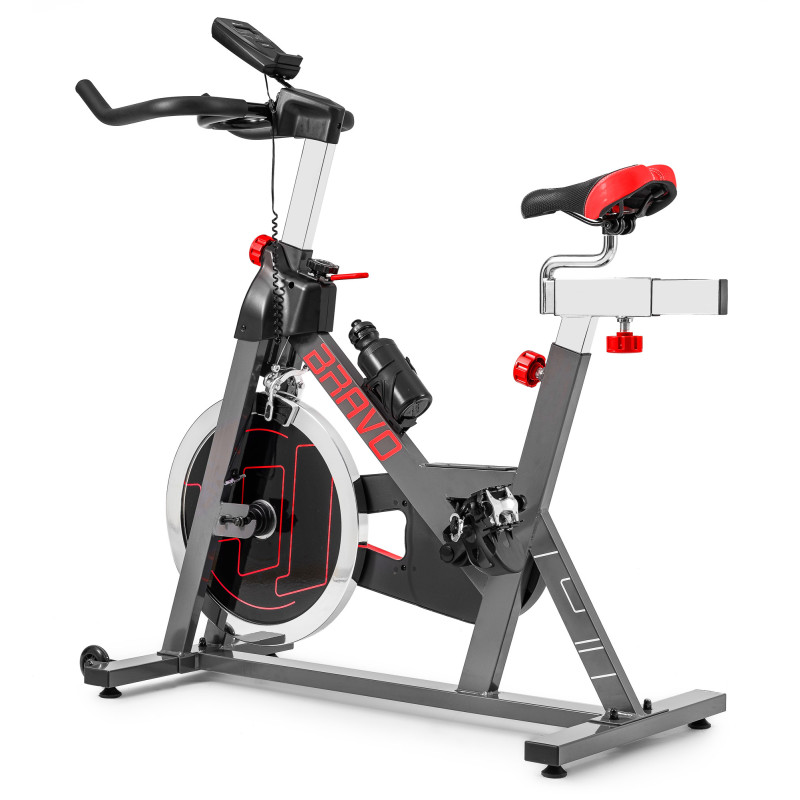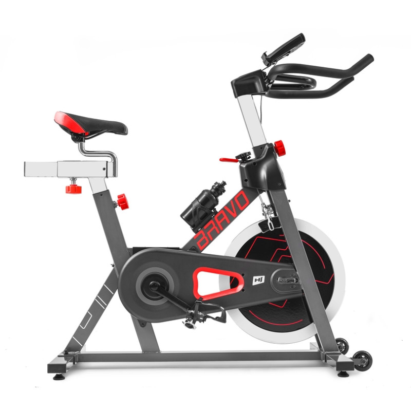 Спиннинговый велотренажер Hop-Sport HS-045IC Bravo - это высококачественное оборудование для тренировки в домашних условиях. Система цепного привода в сочетании с механической тормозной системой на основе маховика 18кг обеспечивает бесперебойную работу велосипеда. Велотренажер характеризуется тихой эксплуатацией, современным дизайном, прочной конструкцией из стальных профилей и крепкими механическими элементами.