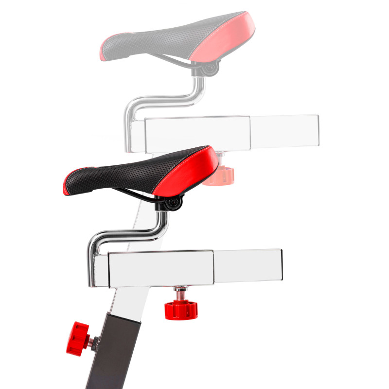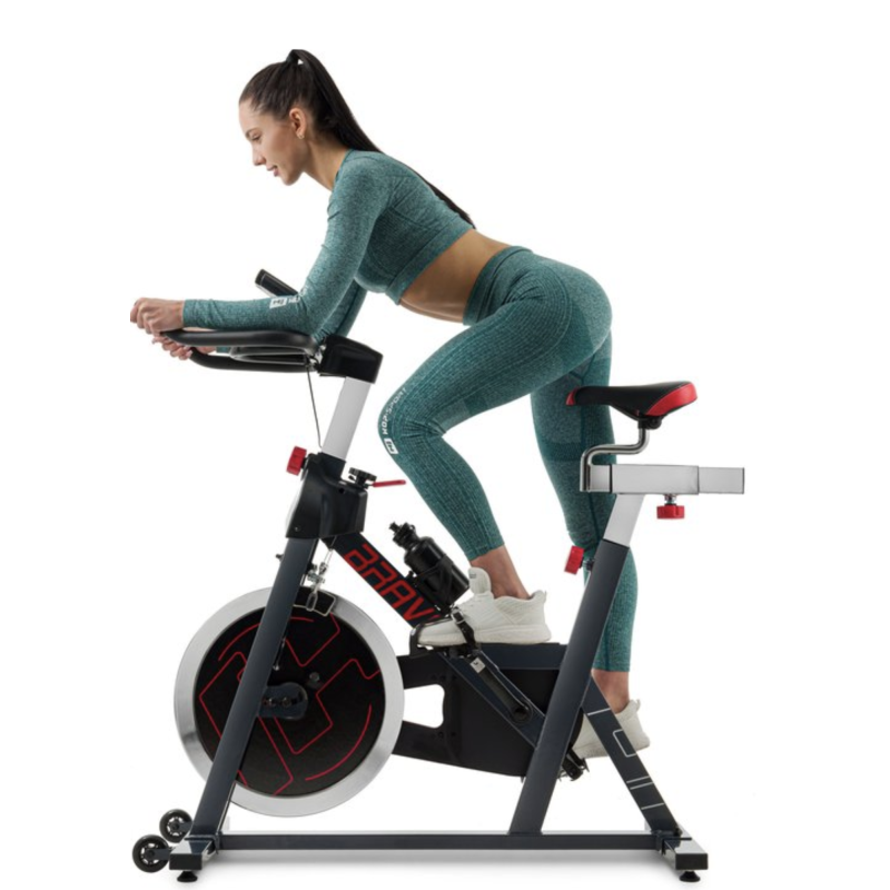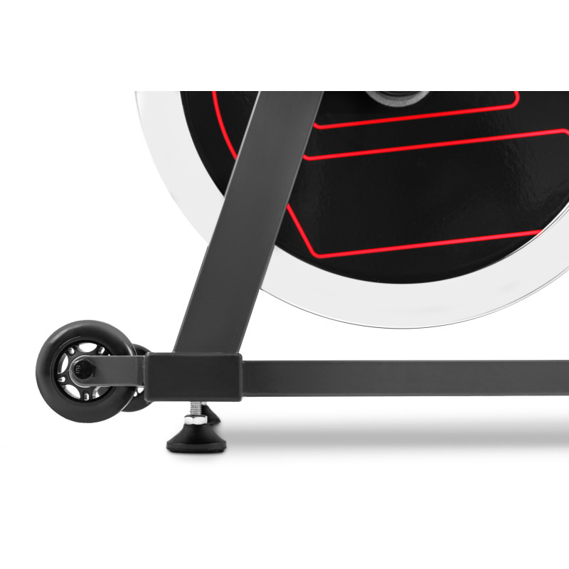 Спинбайк оснащен нескользящими педалями с фиксаторами и аварийным тормозом. Усиленная конструкция и выравнивающие ролики, встроенные в задний стабилизатор, обеспечивают безопасность упражнений. После окончания тренировки не придется беспокоиться о том, что Ваша гостиная будет продолжать напоминать тренажерный зал, ведь спинбайк имеет транспортные ролики, которые позволят убрать его, например, в шкаф.