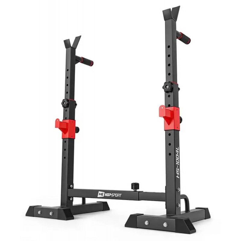 Hop-Sport HS-1004L – это компактная и прочная стойка для безопасных и разнообразных силовых тренировок. Регулировка высоты и ширины, страховочные крючки и ручки для французских отжиманий делают ее универсальной для упражнений со штангой и собственным весом.