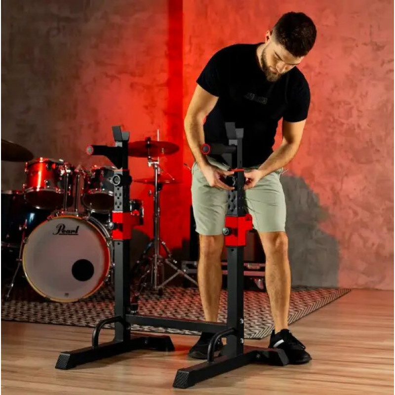 Благодаря возможности менять расстояние между стойками вы сможете выполнять широкий спектр упражнений – от жима лежа и жимов стоя до приседаний со штангой. Более широкая дистанция обеспечивает стабильность во время работы с длинными грифами, тогда как уже идеально подходит для более компактных штанг или для пользователей с меньшим размахом рук.