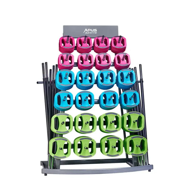 Стойка для Body Pump от Apus Sports - это идеальное решение для организации тренировок с использованием штанг и гантелей. Эта стойка позволяет удобно и безопасно хранить и использовать штанги во время тренировок. Благодаря компактному дизайну она легко помещается в любом тренировочном зале или даже дома.