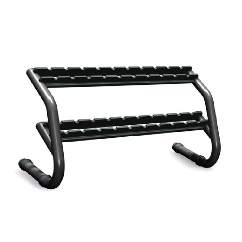 Безопасность и стабильность: Конструкция стойки обеспечивает надежную фиксацию гантелей, предотвращая их падение и обеспечивая безопасность во время тренировок.