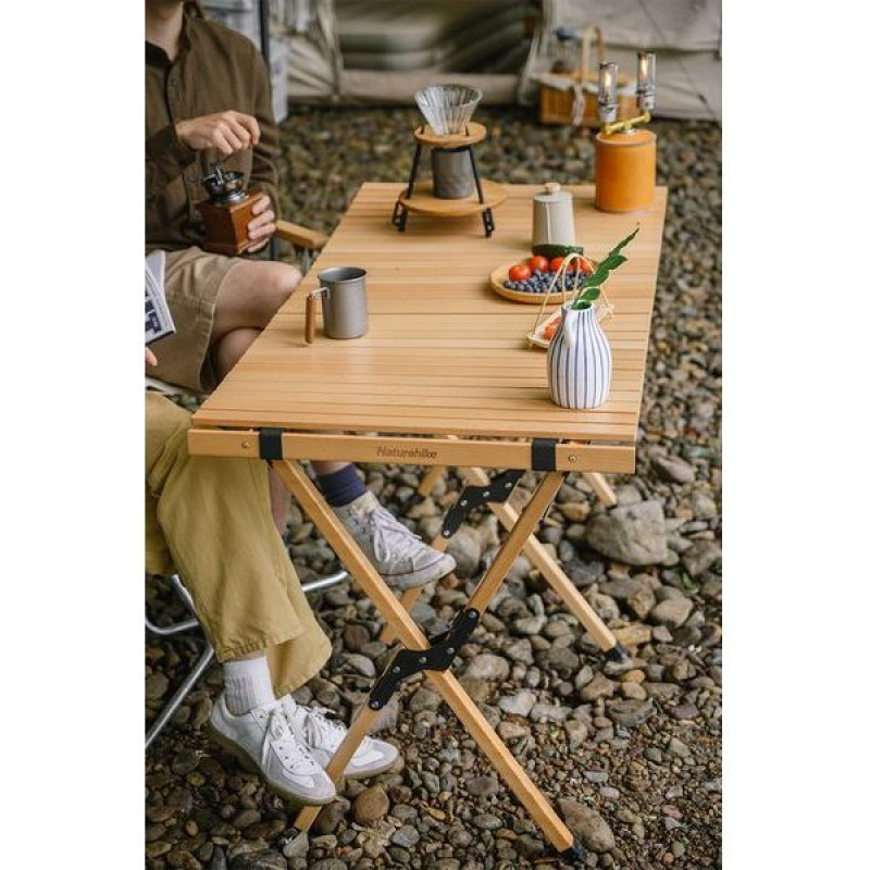 Опис дерев'яного розкладного стола Naturehike NH19JJ009, світле дерево, великого