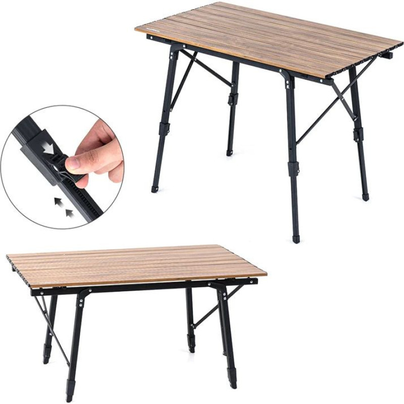 Складна конструкція виробу оптимальна для того, щоб його використовувати в різних видах відпочинку на природі. Витримує навантаження 30 кілограм. Розміри столу: 90*52*46/68 см. Важить 4 кілограми.