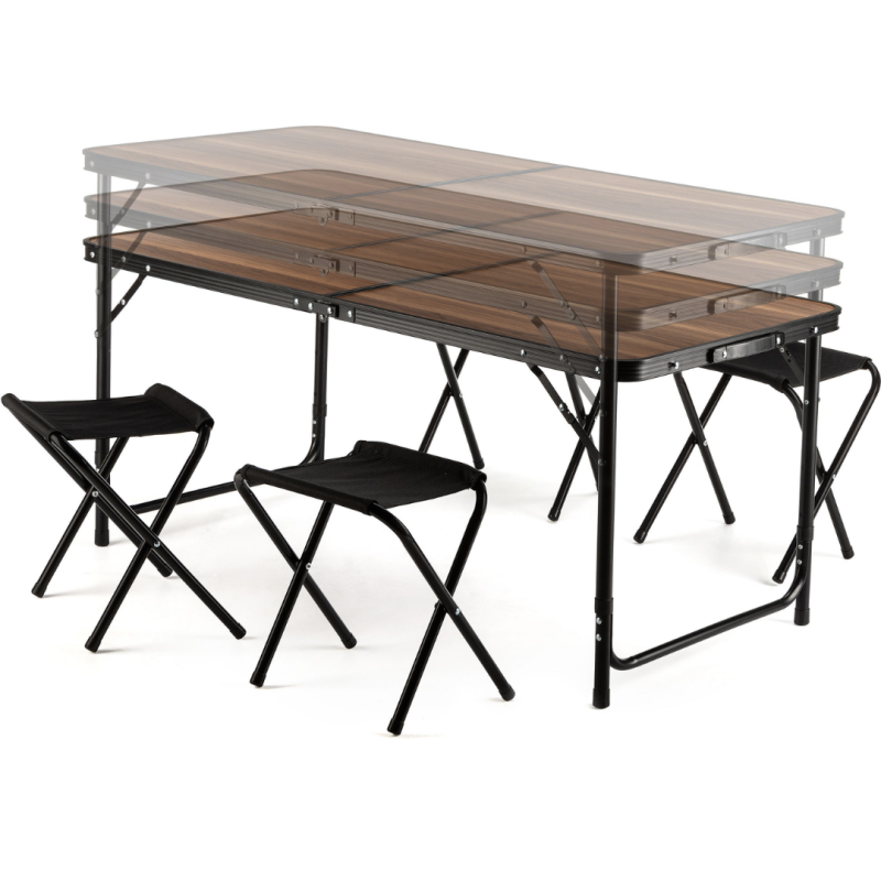 На семейном пикнике или туристической поездке хочется отдыхать с максимальным комфортом. Складной стол с четырьмя стульями для семьи или небольшой компании - это просто идеальное решение. Стол регулируется по высоте на 3 уровня, что придает удобству для посиделок компании любого роста и возраста.