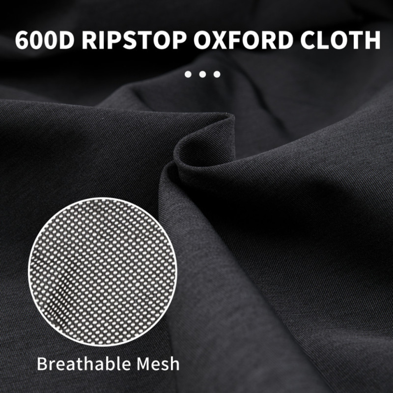 - Сидіння та спинка з тканини Оксфорд 600D Ripstop із сітчастими вставками. Матеріал високої щільності не рветься та не розтягується під час тривалої експлуатації. Ще одна перевага тканини — здатність відштовхувати краплі води та забруднення. Вставки з сітки з обох боків покращують якість циркуляції повітря в області спини.