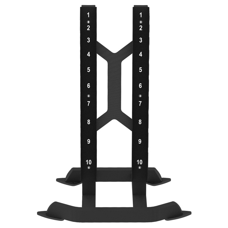 Конструкция предназначена для удобного хранения 10 пар гантелей весом от 1 до 10 кг.
