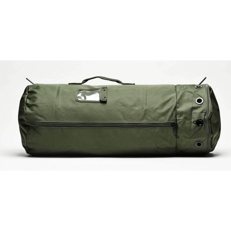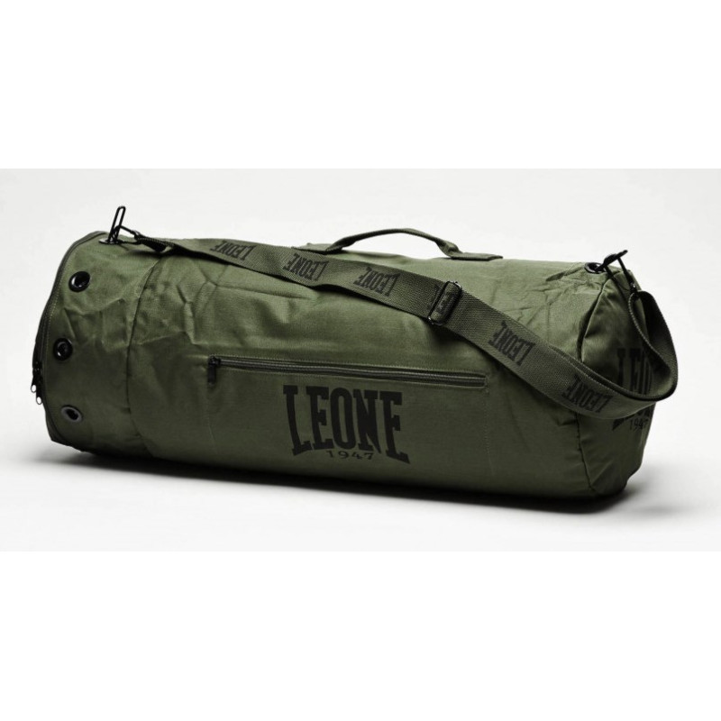 Сумка Leone Commando зроблена з високоякісного поліестеру, дуже міцна, забезпечить Вам необхідну зручність і практичність у використанні. Її можна носити в тренажерний зал або використовувати для туристичних цілей. Вона володіє великим відсіком для розміщення великого інвентарю та одягу, який закривається на блискавку. По боках також передбачені кишені, які добре пропускають повітря і дозволяють переносити вологі після тренування речі. Сумка оснащена звичайною ручкою, що дозволяє переносити її в руках. Крім того, є довгий наплічний ремінь, який кріпиться за допомогою карабінів і може бути знято в будь-який момент. Сумка вміщає до 65 літрів. Діаметр – 32 см, довжина - 80 див.