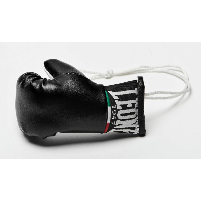 Сувенірна рукавичка Leone Black - призначена для автомобіля. Повісивши її на дзеркало в салоні, Ви зможете віддаватися спогадам про найцікавіших моментах, пов'язаних з боксом. Виріб являє собою мініатюрну копію професійних боксерських рукавичок на шнурівці, яка служить і для їх підвішування. Сувенірна рукавичка виготовлена з інженерної шкіри.