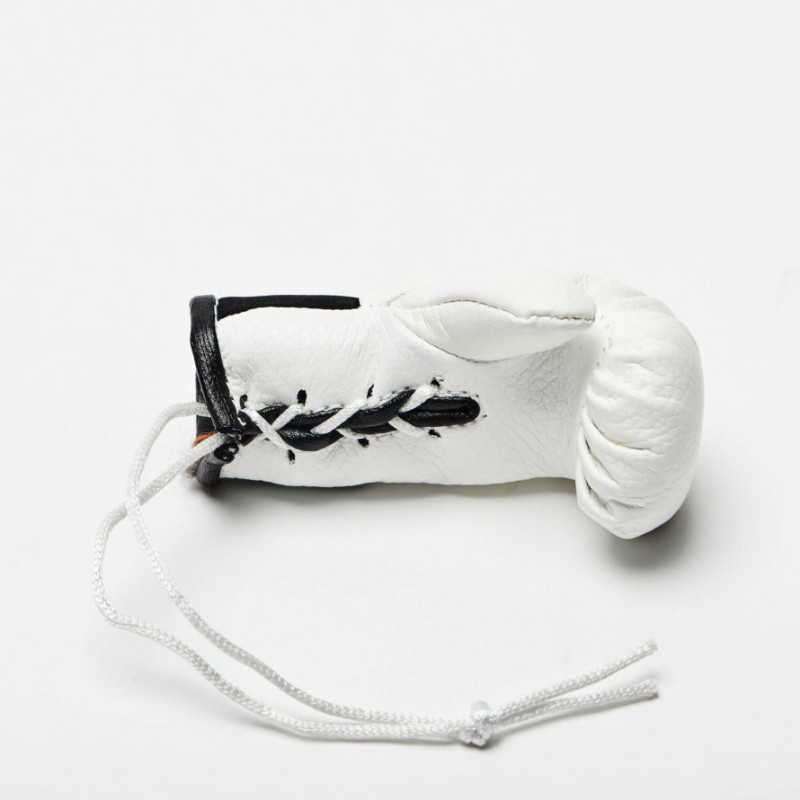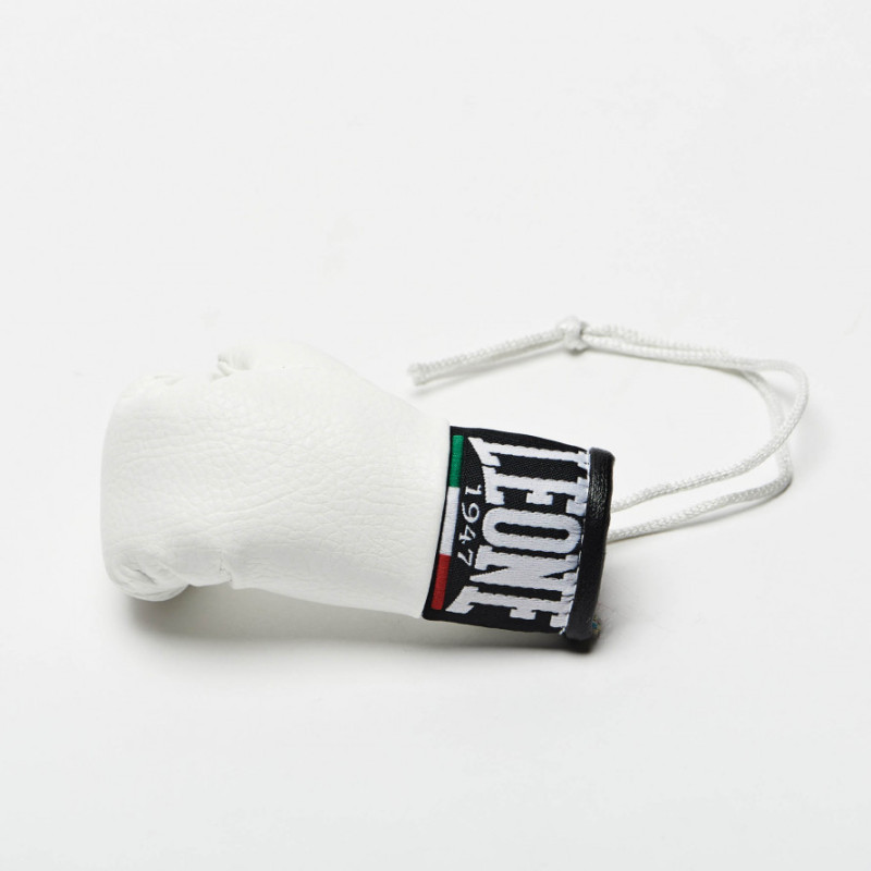 Сувенірна рукавичка Leone White -призначена для автомобіля. Повісивши її на дзеркало в салоні, Ви зможете віддаватися спогадам про найцікавіші моменти, пов'язані з боксом. Виріб являє собою мініатюрну копію професійних боксерських рукавичок на шнурівці, яка служить і для їх підвішування. Сувенірна рукавичка виготовлена з інженерної шкіри.