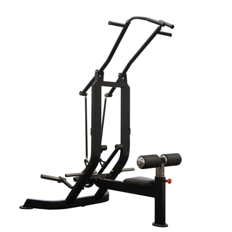 Тренажер "Рычажная тяга вниз" обладает прочной металлической конструкцией, что гарантирует его долговечность и надежность. Эргономичный дизайн способствует комфортному и безопасному выполнению упражнений.