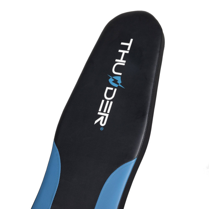 - Сидіння і спинка складаються з декількох шарів: стабілізуючої дошки, поролону, що забезпечує комфорт під час тренувань, і оббивки, що імітує натуральну шкіру.