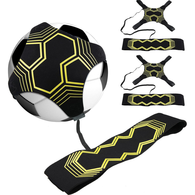 Для отработки точности ударов в футболе можно использовать футбольный тренажер. Пояс имеет универсальный размер, застегивается с помощью липучки. Резинка, за которую мяч крепится к поясу, растягивается до 2,16 м. Мяч помещается в специальное крепление, оно застегивается на липучки. Можно использовать мячи разного размера, так как размер крепления можно менять.