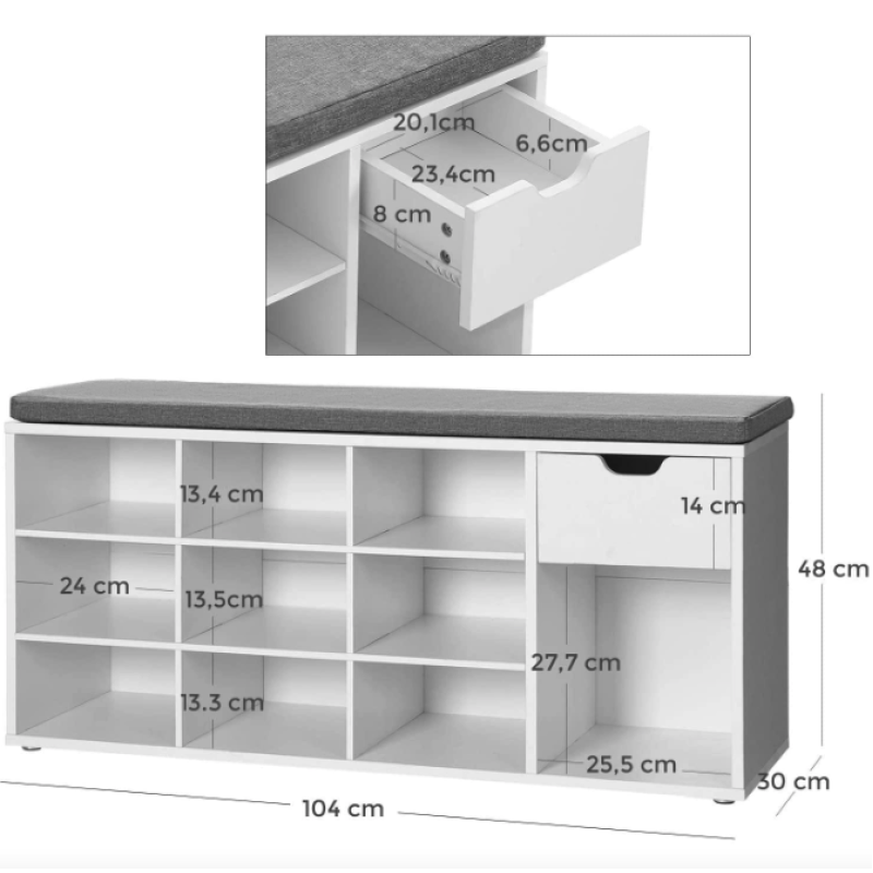 Вы хотите создать комфорт и порядок в своей прихожей? Тумба для обуви Kompred с местом для сидения станет идеальным решением для вашего дома. Эта функциональная и элегантная тумба не только обеспечит удобное хранение вашей обуви, но и добавляет уют и стиль в ваш дом. Изготовлена из качественных материалов, тумба для хранения сочетает в себе современный дизайн и практичность. Удобное сиденье позволит вам комфортно обуваться и разуваться, а многочисленные полки обеспечат место для всей вашей обуви. Выбирая эту тумбу, вы получаете не просто мебель, а надежного ассистента, который внесет гармонию и порядок в ваш дом. Сделайте вашу прихожую воплощением стиля и удобства вместе с Leobert Kompred!