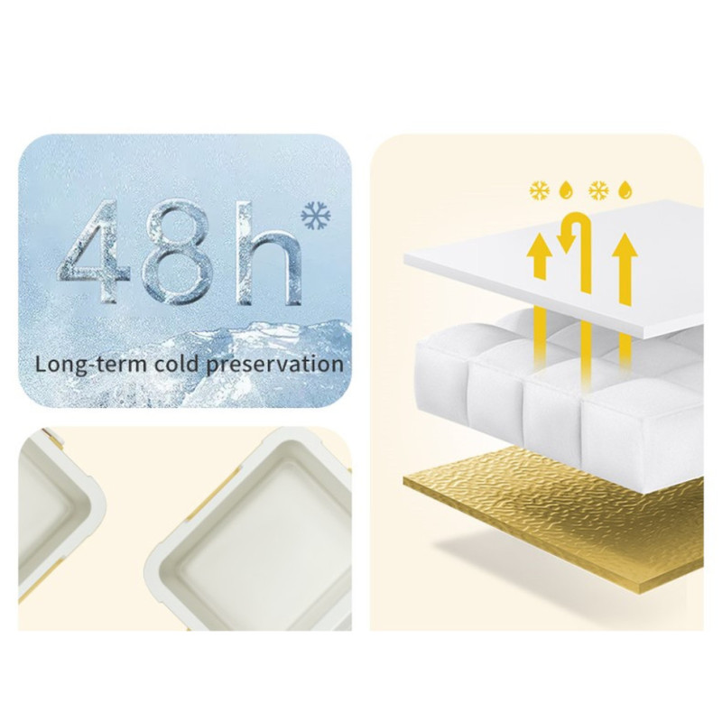 - Середній шар з поліуретану (PU) відповідає за підтримання стабільної температури всередині контейнера незалежно від температури навколишнього середовища.