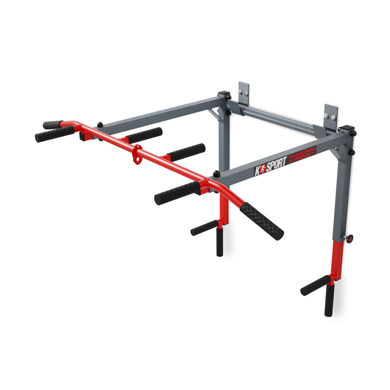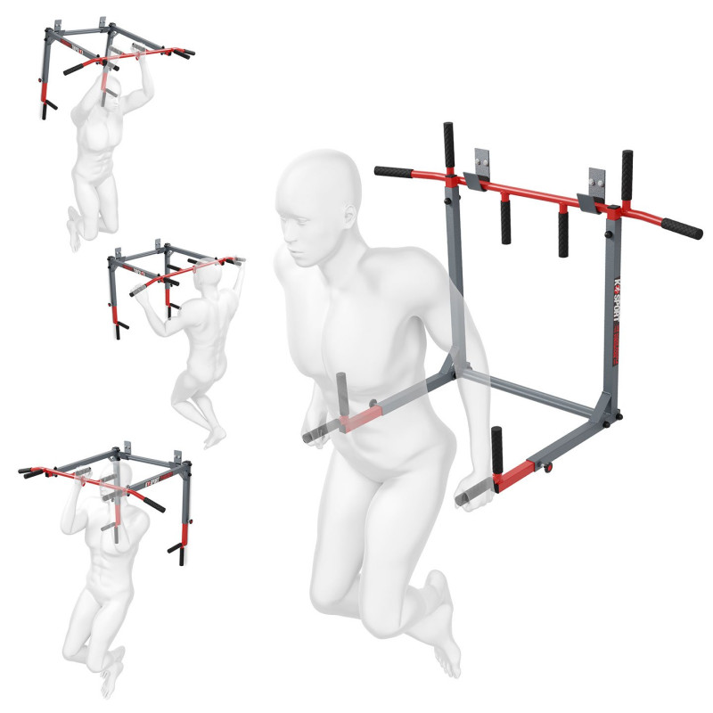ТУРНІК ДЛЯ ПІДТЯГУВАНЬ 2В1 KSSL081 Обладнання, призначене для монтажу на стіні. Він має два способи кріплення, тож ви можете використовувати його як штангу для підтягування або занурення. Безліч можливостей для професійного тренування м'язів спини і рук завдяки п'яти різним захопленням. Після повороту обладнання поручень дозволяє ретельно тренувати м’язи преса, рук і грудей. Гачки в комплекті!