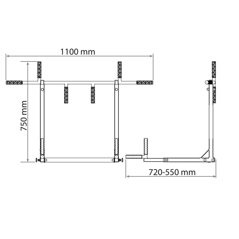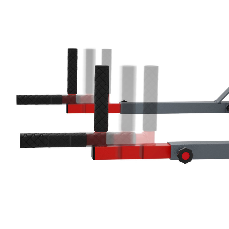 РУЧКИ ПОРУЧНЯ РОЗСУВНІ! Ручки висуваються на 16 см (максимальна відстань від стіни майже 72 см). Це дозволяє регулювати відстань відповідно до ваших індивідуальних потреб або типу виконуваної вправи.