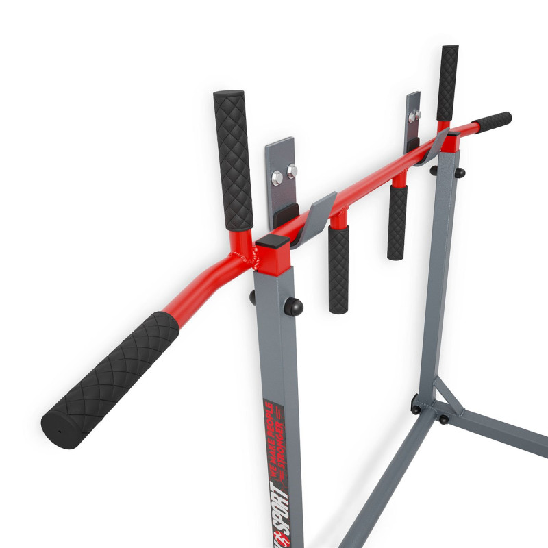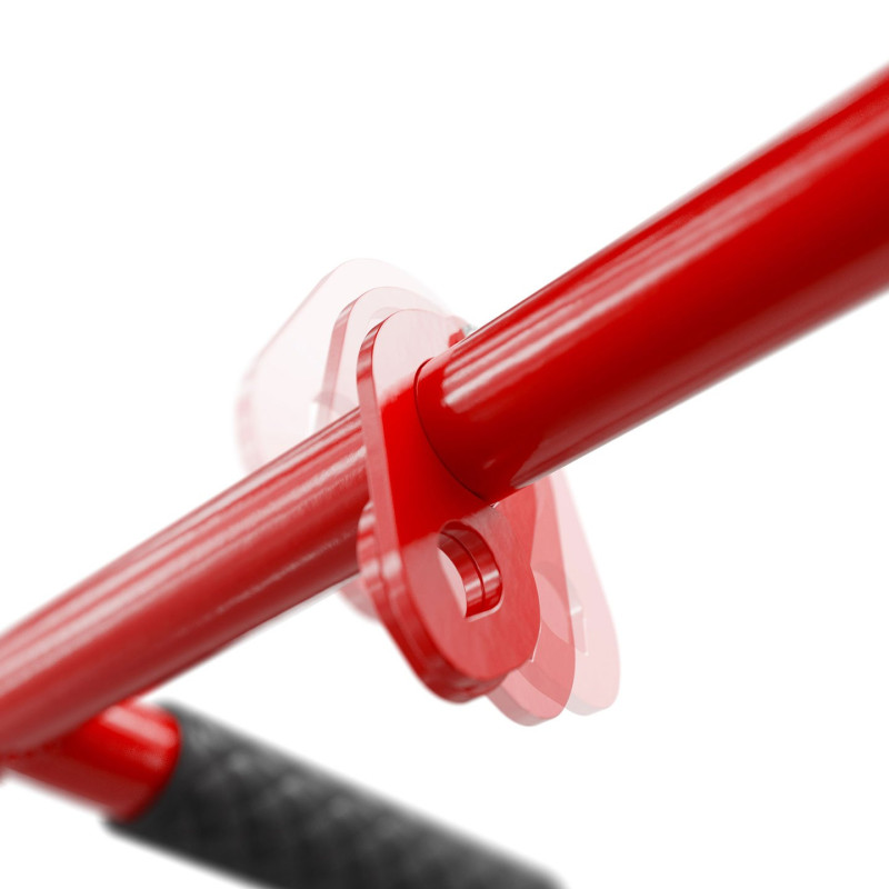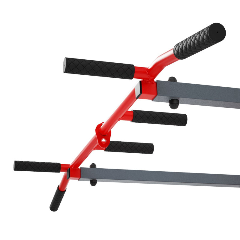 3 ПАРИ РУКОЯТКІВ Штанга оснащена кермом, на якому можна виконувати вправи різними способами: вузьким хватом шириною 20 см, середнім хватом з відстанню 60 см і найширшим - 110 см. Кожен з них дозволяє тренувати різні групи м'язів. Крім того, є також варіант класичного захоплення на червоній трубці.