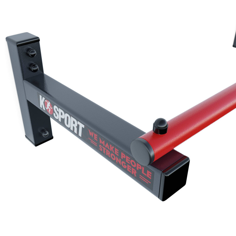 Турнік KSSL108 ідеально підходить для інтенсивних тренувань в невеликих приміщеннях. Його міцна і масивна рама гарантує безпечні тренування. Конструкція також стабілізується зварними профілями та кріпиться до стіни за допомогою 6 шурупів.