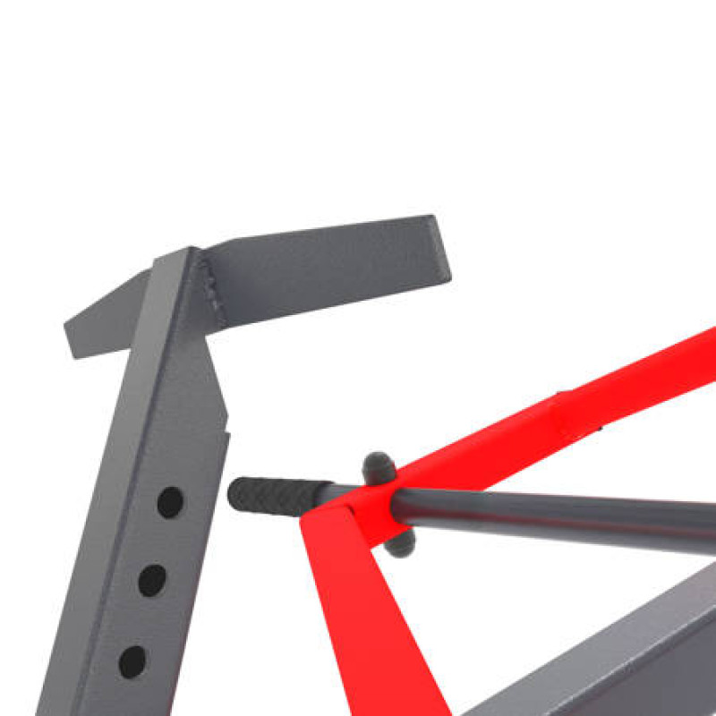 Планка забезпечує стійкість завдяки двом профілям кріплення. Завдяки їм турнік жорстко кріпиться до дверної коробки і забезпечує відмінну жорсткість під час тренувань. Широкий гак у верхній частині рами означає, що планка не тримає всю свою вагу в кількох точках, а розподіляє її по всій монтажній поверхні. Профілі додатково захищені жорсткою нековзкою гумою та ніжками.
